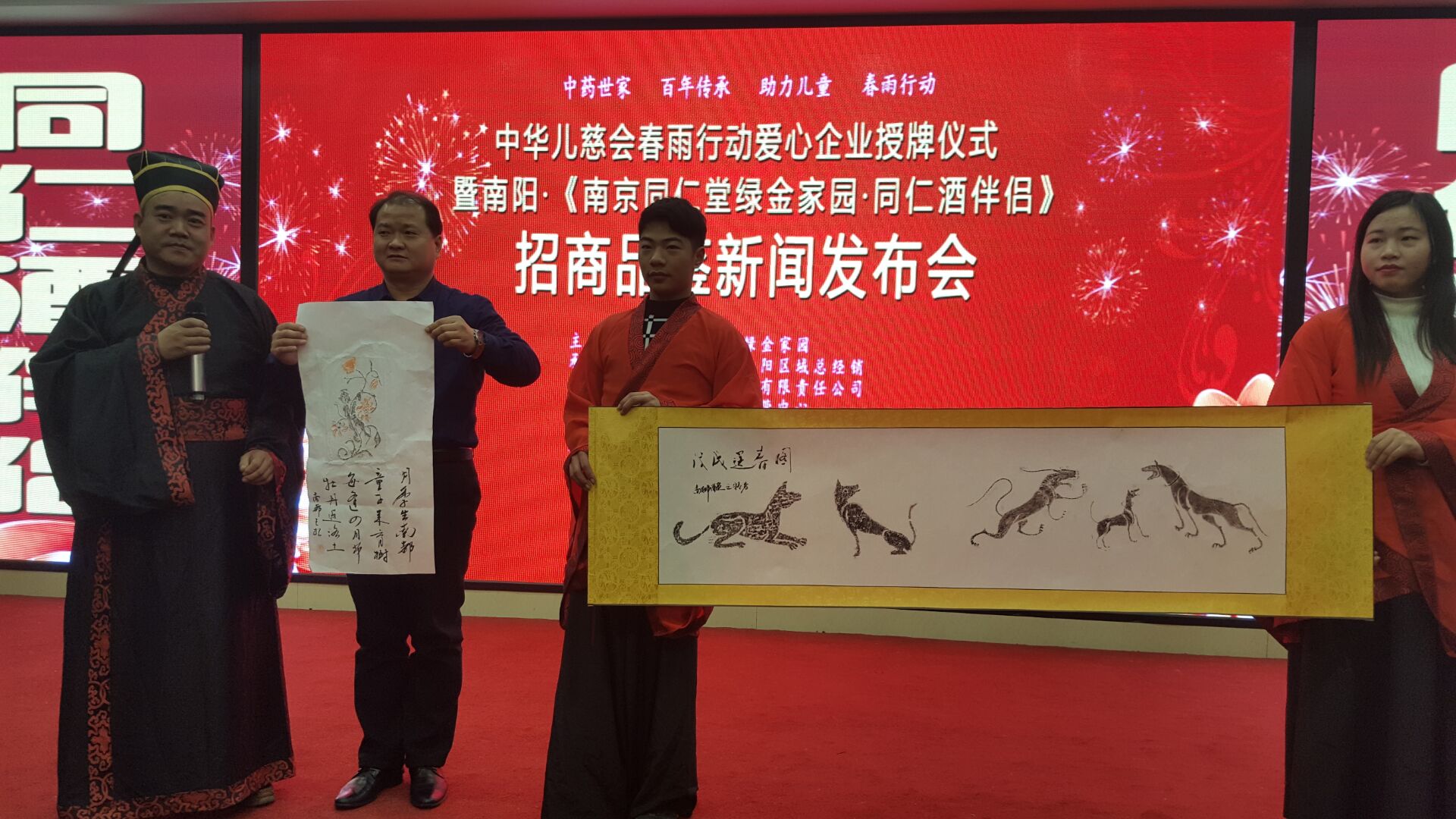 当天上午的活动现场,南京同仁堂绿金家园市场总监周海涛分享了趣味盎然的同仁酒伴侣品牌故事,招商品鉴产品演示让现场惊叹中药世家、百年传承产品的卓越品质和可信赖品性,现场抽奖掀起全场兴趣浪潮、南阳师院邓瓷研究中心主任、汉画专家赵长根教授带领师院学生展演汉画拓片艺术让南阳文脉汉文化散发文化经典魅力,书法家张晓专题为南京同仁堂绿金家园创作了巨幅书画作品“同心同德同仁”,书画家孙富东、张宏岐挥毫泼墨,葫芦丝表演、凯发真人的产品展示模特秀等表演,将活动一次又一次推向热潮。与会者感受爱心的同时也沐浴在友善、健康、和美、喜悦的艺术氛围中,沐浴在情景如春的温暖和芬芳中,沐浴在对生活、对未来点燃起来的无限美好的愿望里,感慨生活越来越好,感恩伟大的党,感恩伟大的祖国,感受到了改革开放四十年来祖国从站起来、富起来到强起来的伟大飞跃。