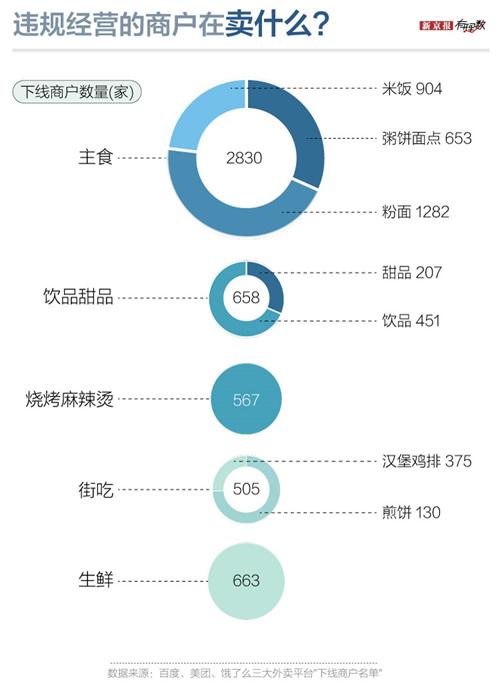 经营主食类的外卖商户,包括粥、饼、饭、面、粉,是此次被下线的“重灾区”,而饮品、甜品店被下线的数量也不容小觑。前段时间,某“网红”饮品店就被曝光使用腐烂、过期的水果制作“新鲜”水果杯和鲜榨果汁。