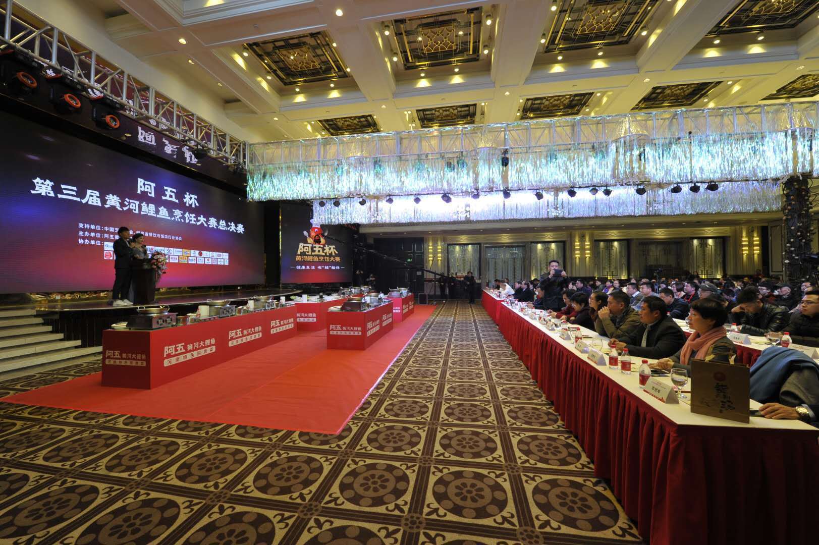 2019年1月6日,“阿五杯”第三届黄河鲤鱼烹饪大赛年度总决赛在郑州火热开赛。原河南省商务厅巡视员曲安民,中国烹饪协会副会长、阿五黄河大鲤鱼创始人樊胜武,河南省餐饮与饭店行业协会会长张海林、常务副会长张仁平,长垣县烹饪协会会长江榜成、常务副会长张世显、繁简定位创始人王旸、芽状元、豆状元相关负责人等200余位行业大咖、媒体代表共同见证了本次活动的举行。