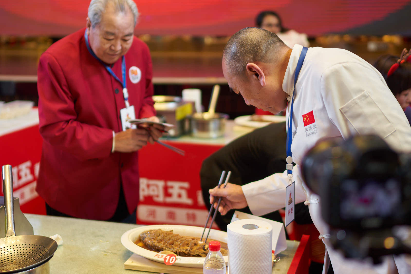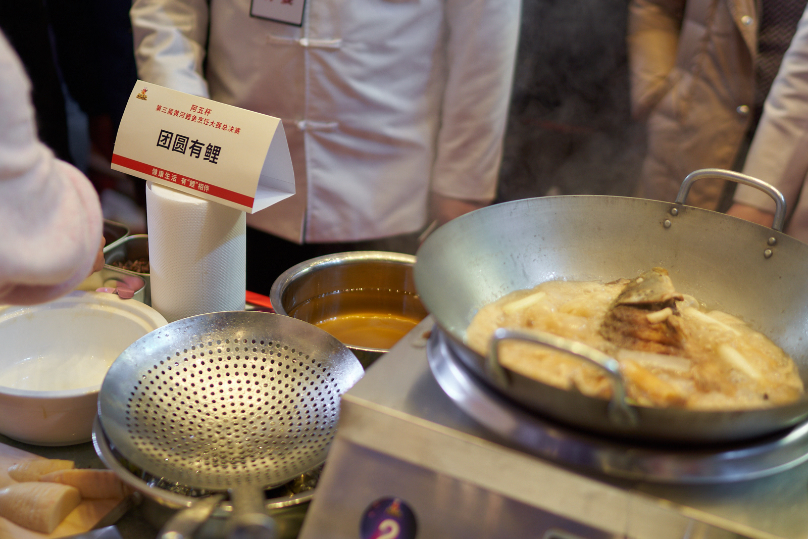 45分钟之内,10位选手纷纷亮出看家本领,引得评委连连称赞,这边解鱼干脆利落,专业口诀信手拈来;那边炸鱼火候拿捏极为稳妥,成型的鲤鱼漂亮有型。