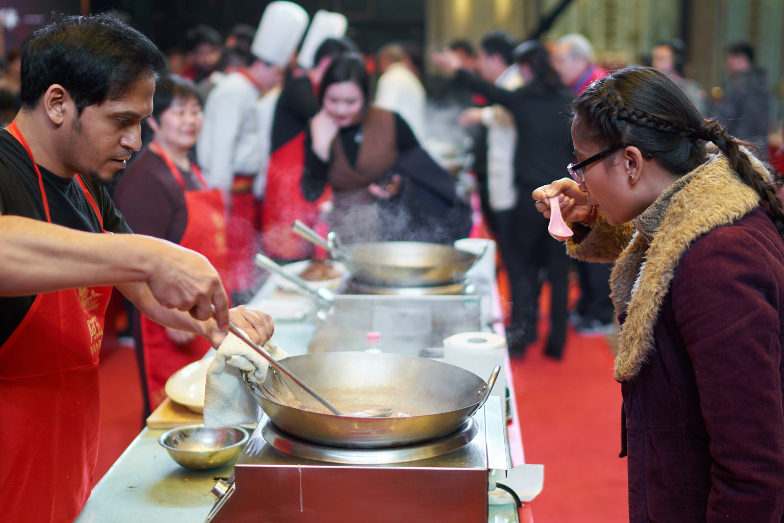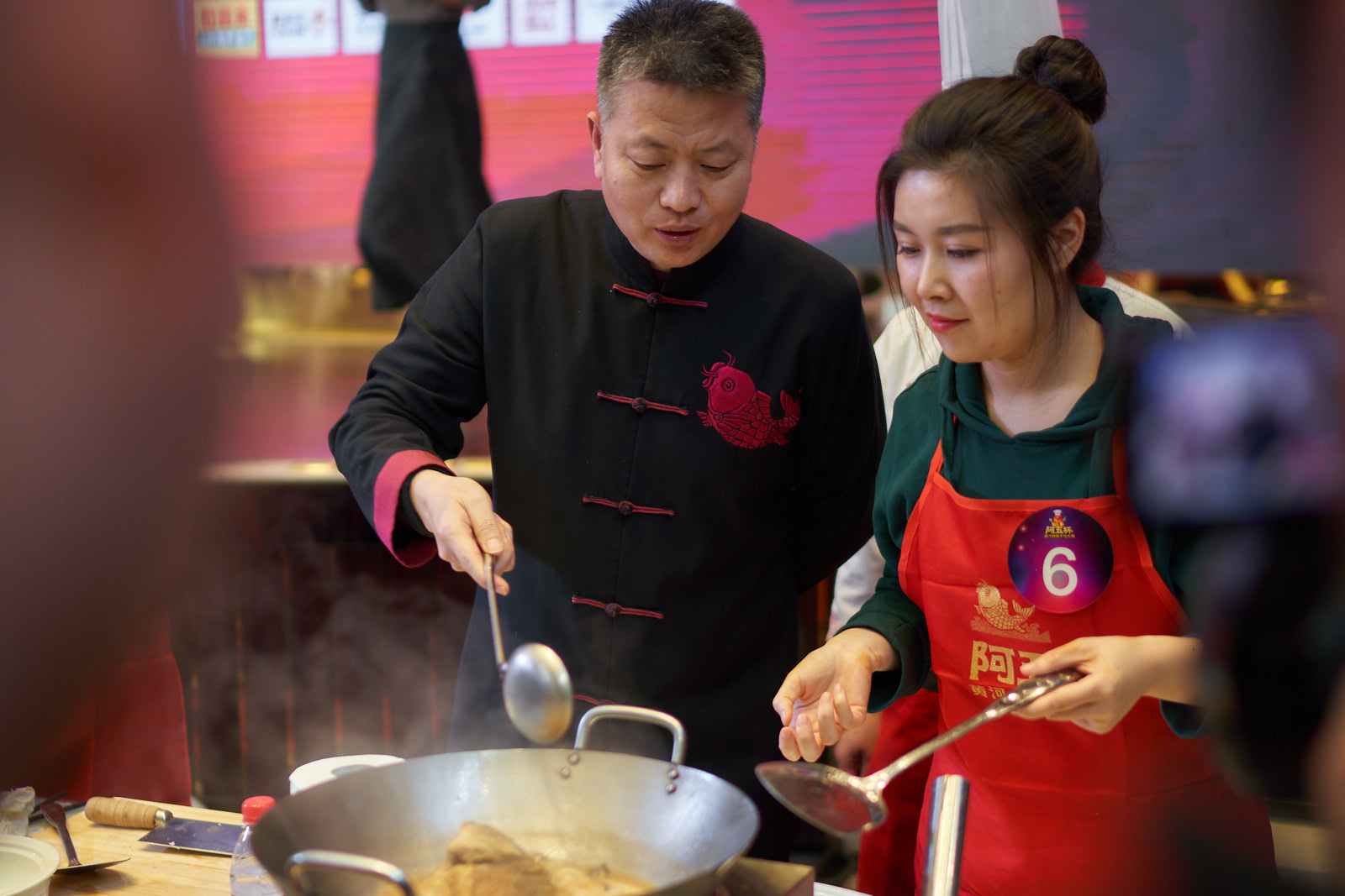 决赛现场,有来自孟加拉国的郑大留学生,有精益求精、决赛前夜还在练习的企业家,有带来了独家腌鱼秘籍的媒体记者,有刀工完美直逼专业水准的烹饪达人。