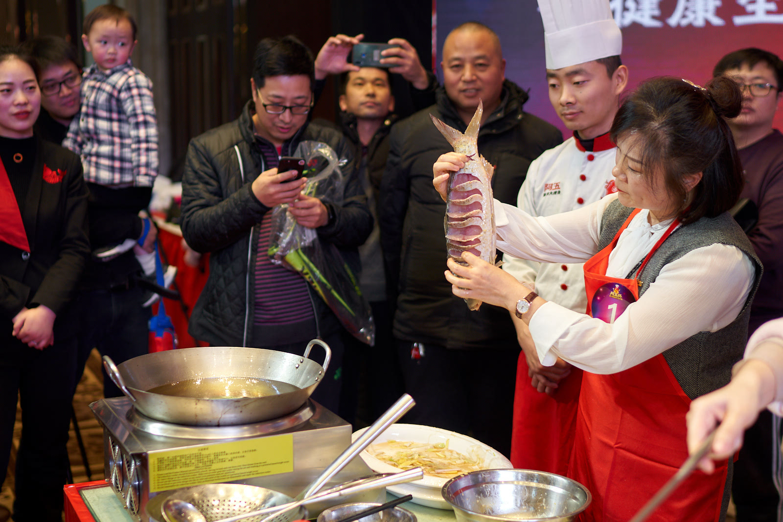 最终,经过激烈的角逐、专业的点评,1号选手李亚辉,所烹制的大鲤鱼,因刀口均匀、色泽美观、口味独特,从10位烹饪高手中脱颖而出,赢得评委们的一致好评,斩获年度冠军,夺得价值30000元的大奖。