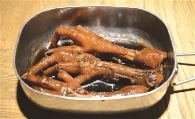说到装在饭盒里的美食,弄堂里的极致卤鸡爪绝对榜上有名。头一回吃弄堂里的鸡爪是在龙井店,5元一只鸡爪蒸得软糯,表皮沾满了汤汁,在灯光下熠熠发亮,入口又软又韧,弹性十足又不会咬不断,非常的可口。如今再吃发现它除了口味好,还有一个特别有意思的点是它盛装在老式的蒸饭饭盒里,浓浓的怀旧感。让人仿佛置身于童年的弄堂里。而装在铝制饭盒中的鸡爪则散发的是童年味道,让人感觉回到儿时家中的餐桌上。