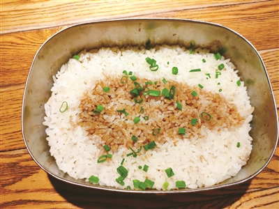 在天虹广场的柒零主题餐厅,记者看见了消失很多年的铝饭盒。银灰色的盒子方方正正,里面装着一盒猪油拌饭,每份5元。