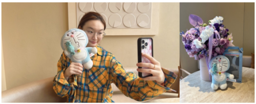 这种跨越代际的情感传递在异地恋情侣间衍生出新形态。青岛白领eleven的必胜客哆啦a梦玩偶还拥有条独一无二的手写“必胜”头巾,这是在她备考崩溃时,男友通过朋友快递给她的,同时还有必胜客外卖咖啡上传递的纸条:“哆啦a梦的魔法是让不可能变成可能。”当玩具从“物质奖励”进化为“情感信使”,必胜客的红色屋顶成了都市人的心灵补给站。