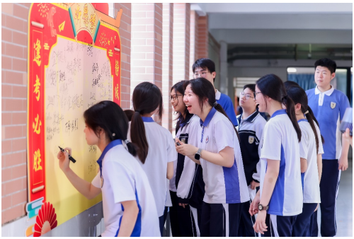 叶老师知道,这份祝福不止于寓意“堡你高中”的披萨堡或“逢考必胜”的响亮口号,这更是同学们的心灵加油站。作为一名多年坚守在毕业班的生命成长导师,她更懂得,在“必胜”这个充满力量感的词汇背后,孩子们真正需要的是什么。“备考这条路,就像一场长跑。无论结果如何,你们早已是自己的英雄。”看着“必胜门”下年轻的身影,叶老师感叹道: “我们每天看着学生,从晨光熹微到夜色深沉,看着他们为一道难题反复演算,为一次模拟考的得失或喜或忧。这些瞬间,比最终那个分数更珍贵,因为它们记录着孩子们真实的、全力以赴的成长。”