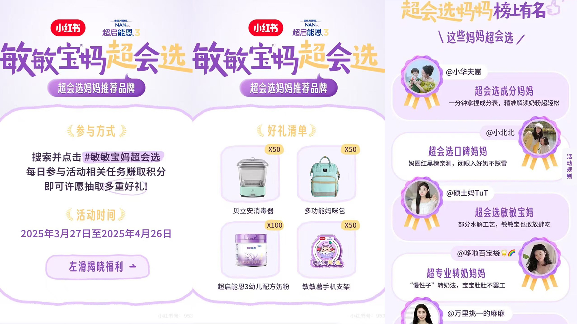 小红书「敏敏宝妈超会选」携手雀巢超启能恩3