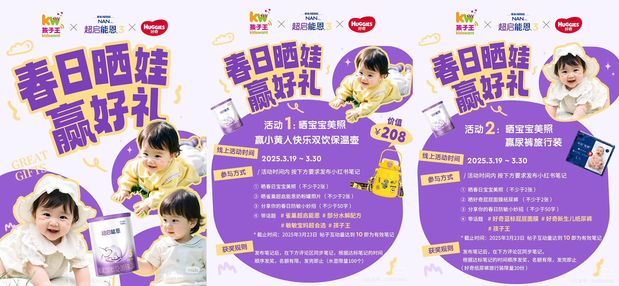 2025年,“敏敏宝护理”热度逐步攀升,为响应趋势,3月@辣妈成长日记 携手雀巢超启能恩发起线上号召,设置了超多福利机制激励宝妈参与「敏敏宝妈超会选」活动,帮助新手宝妈缓解养娃过程中的焦虑,实现轻松育儿。