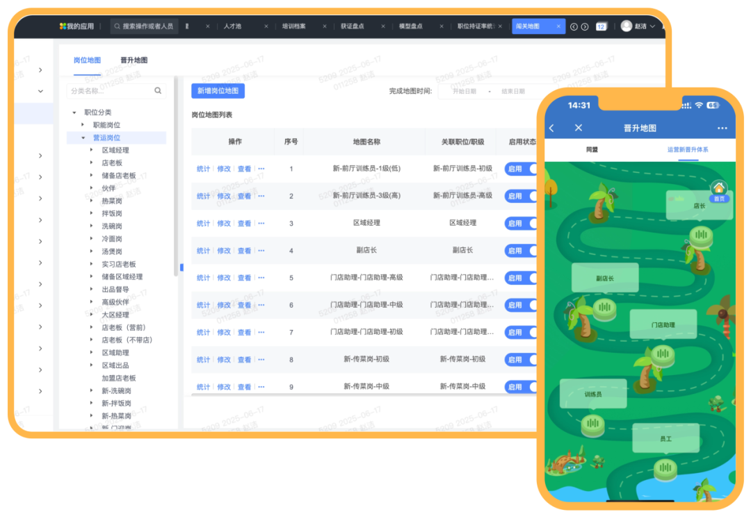 最后,“小木屋拌饭”打破岗位晋升壁垒,投建全透明、全开放的晋升体系,以可视化闯关地图重塑职业发展路径。员工可依据自身规划,自主参与晋升闯关。在晋升地图中,每一关卡均匹配阶梯式薪酬激励,职级跃升即刻转化为薪资增长,让奋斗目标具象可感,充分点燃员工向上的热情。