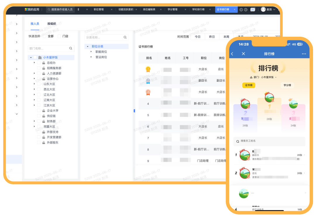 “小木屋拌饭”自 2016 年于辽宁铁岭落下首颗 “棋子”,这家以东北地域文化为底色的餐饮品牌便以差异化模式迅速破局 。短短数年间,其门店数量已突破500 家,足迹遍布24 个省份、133 座城市。随着门店扩张速度的加快,为了加大对门店标准化的管理,“小木屋拌饭”上线了沃才人才认证管理系统,从新员工培训到老员工的晋升培养,全路径进行线上化统一的管理。