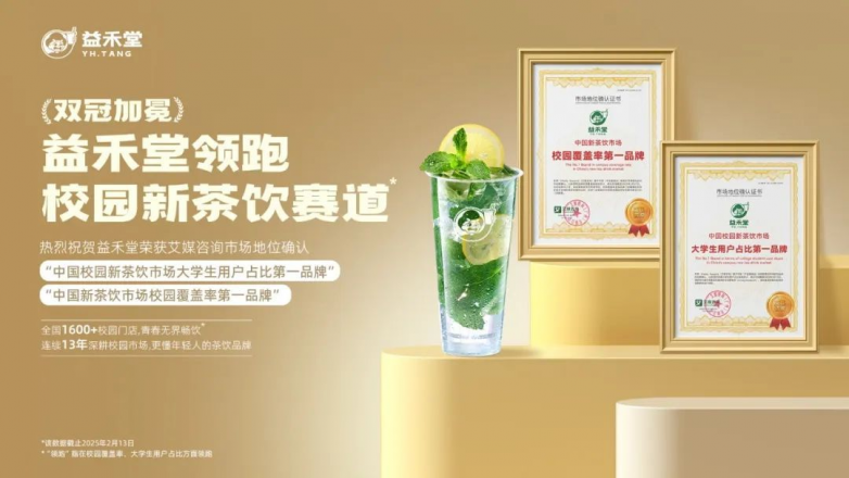 高校市场对益禾堂具有特殊的战略意义,学生不仅是茶饮消费的主力军,更是潮流文化的创造者和传播者。在薄荷家族三周年之际,益禾堂以校园为核心场景,针对全国高校门店推出五款薄荷系列饮品及限定周边,以清新口感与诚意福利回馈大学生群体,既增强了大学生群体的品牌归属感,又通过学生自发传播扩大了品牌影响力。基于对校园市场的深耕和学生群体的维系,益禾堂在今年3月荣获艾媒咨询颁发的“中国校园新茶饮市场大学生用户占比第一品牌”和“中国新茶饮市场校园覆盖率第一品牌”双冠认证殊荣。
