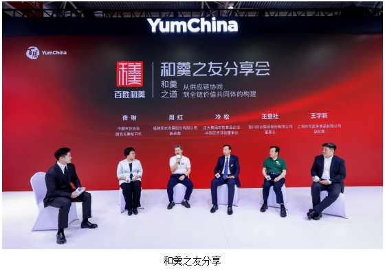 “共筑互信生态”是“百胜和羹发展计划”的关键维度,意在打破传统采供边界,构建以信任为纽带的产业协同网络。在“百胜和羹发展计划”发布会上,百胜中国携手供应链上的优质伙伴共同举办了一场聚焦供应链协同共生的“和羹之友分享会”,来自圣农、正大集团、雪川、妙可蓝多的企业家代表,作为首批“百胜和羹之友”,以“和羹之道——从供应链协同到价值共同体的构建”为主题展开讨论。