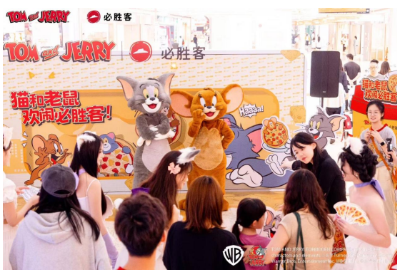 步入必胜客精心打造的主题餐厅,带你瞬间穿越进汤姆与杰瑞的嬉戏天地。汤姆杰瑞追逐打闹的大型窗贴以及复刻经典动画场景的趣味打卡点,沉浸式打造欢乐解压的聚享时刻,让每一次美味用餐都成为奇妙冒险。还有“大明星”汤姆和杰瑞空降上海美罗城、深圳中心书城、杭州西溪及天津南开大悦城四家门店,与消费者亲密互动合影,引发大量消费者前往打卡。