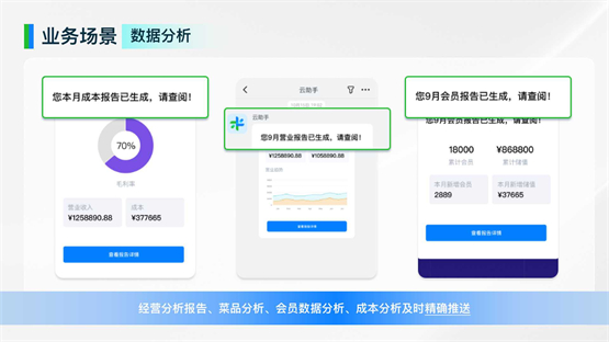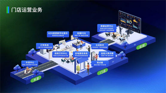 - 门店运营:提供智能化的餐厅运营工具,实现前厅后厨一体化管理,优化流程效率;实时反馈经营数据,智能报表分析赋能精准决策,助力高效运营。