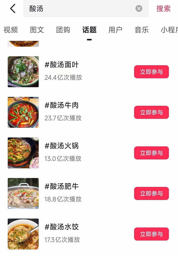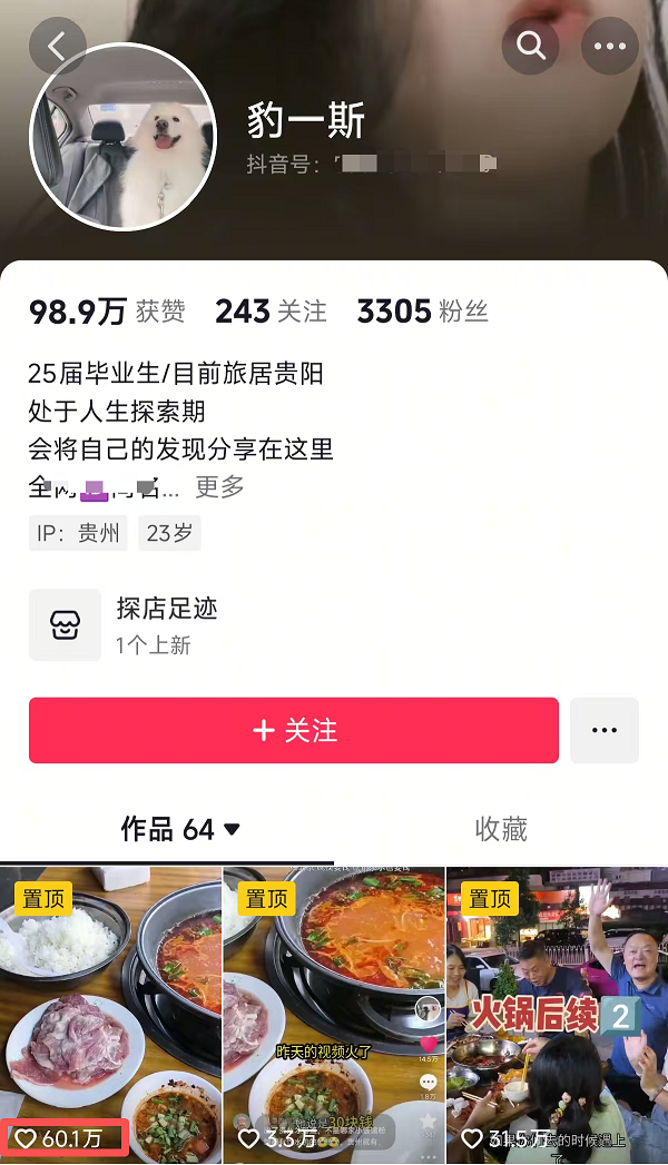 其中酸汤作为云贵代表性美食率先破圈,抖音有多个与“酸汤”有关的话题播放量破 10 亿,这些视频为云贵美食种草了一大批粉丝。最近探店博主 @豹一斯 发布了一条探访贵阳某酸汤火锅店的视频,收获60万点赞,数万粉丝在评论区流下“羡慕的口水”