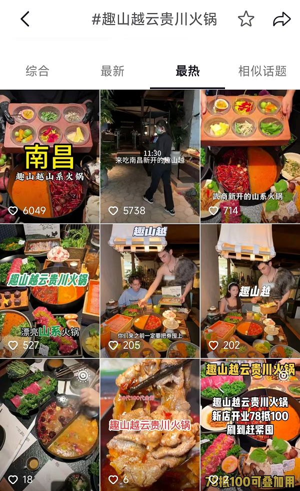 比如文章开头提到的商家趣山越,作为一家今年新开张的火锅品牌,将抖音作为吸引客流的核心阵地,仅用一周时间就打了一场“漂亮仗”。品牌总经理李抒认为,抖音可以帮助商家传播产品和经营理念,把“原创 好吃 好看的产品”展现给海量消费者,“顾客没理由不来”。