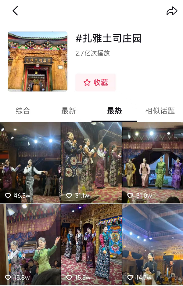 线下做好扎实的基础设施后,扎雅土司庄园开始将抖音当作重要的宣传阵地,借助抖音强大的沉浸式内容呈现能力(直播、短视频) 和文化兴趣标签,向用户展示独特民族文化体验,在用户心中打造新的消费心智:在扎雅土司庄园用餐,不是简单地吃饭,还是一场文化盛宴。
