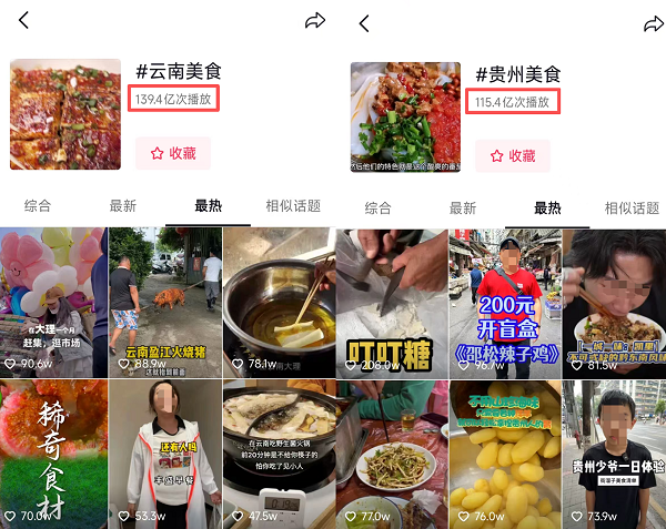 数据显示,抖音“云贵美食”等话题视频播放量累计超 254 亿人次,帮助云贵餐厅种草了数以万计的消费者。