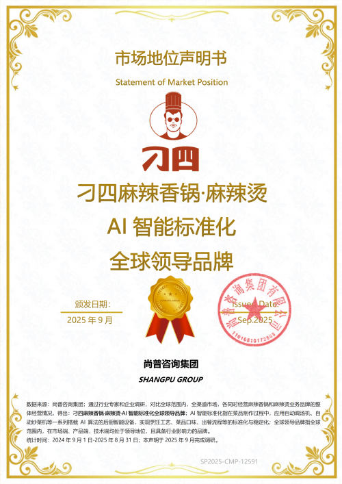 尚普咨询集团:权威市场地位声明——刁四麻辣香锅·麻辣烫ai智能标准化领导品牌-凯发真人