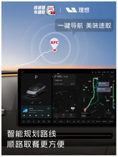 目前,该智能点餐功能已率先在理想 i6 车型上线落地。未来将逐步覆盖理想汽车全系车型。此举不仅标志着肯德基车速取已实现高德地图、肯德基app 及理想汽车车载端的多渠道布局落地,更进一步完善了肯德基在“车行生活”赛道的战略布局,同时为餐饮零售与汽车智能生态的跨界融合丰富了全新范式。