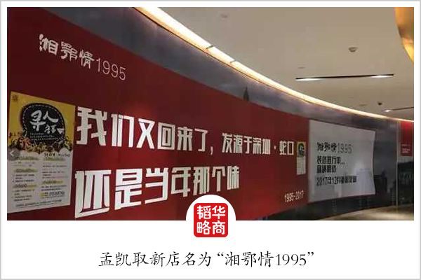 但仅仅四年后,湘鄂情的业绩就一落千丈,在经历了关店、转型和内部纷争等一系列痛苦的波折后,孟凯从与自己相伴23年的湘鄂情黯然出局。