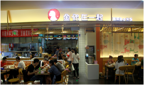 “鱼你在一起”酸菜鱼@米饭是在酸菜鱼大品类里面创新出来的酸菜鱼快餐品类,是一个有着优质平价、爆销单品、高速流转、时尚就餐环境等特色的快时尚餐饮品牌。客单价不高,单人也可以吃一顿美美的酸菜鱼,并且5分钟就能出餐,明厨亮灶、清新时尚环境,打造快时尚餐饮新典范。