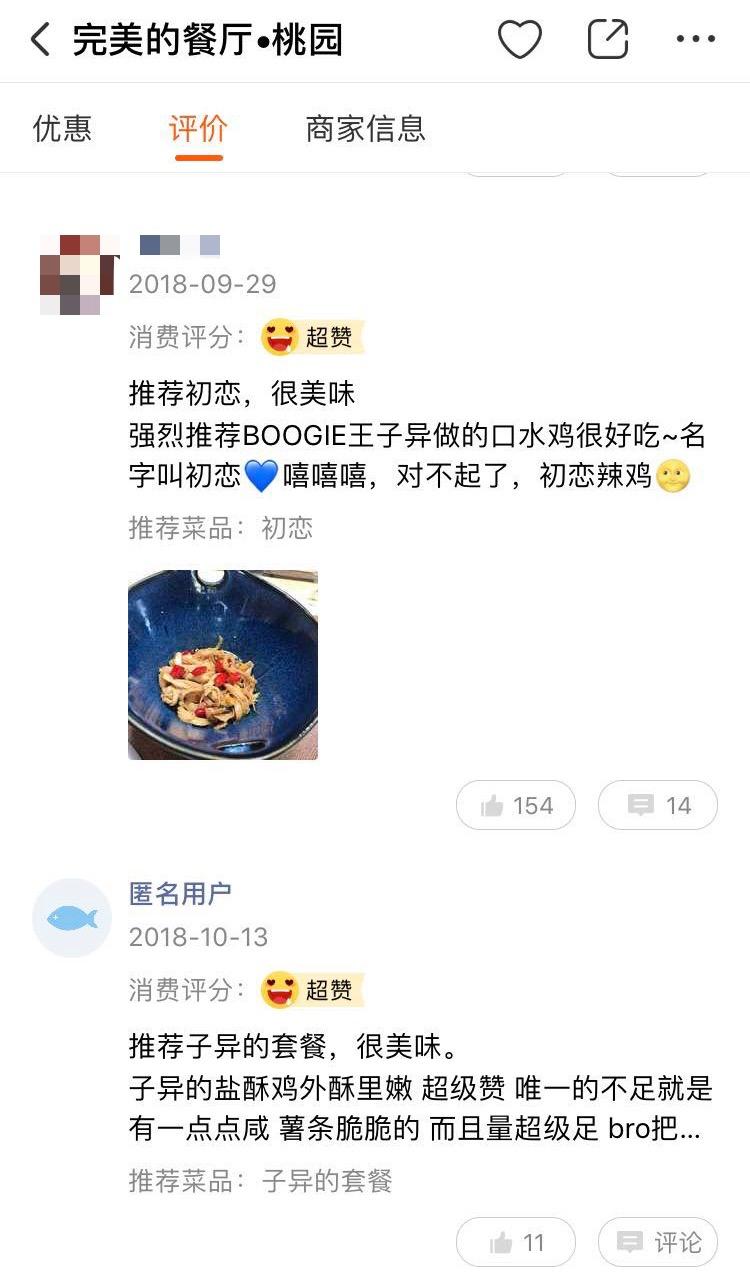 值得一提的是,录制节目过程中,消息灵通的粉丝们,就已在这两家店下单点餐。而从节目播出开始后,用户可以像他们一样在口碑app上预点明星菜式,或直接到店用口碑app手机点单品尝偶像研发的菜品。周到君在口碑app上果真查到了这两家店,我们一起来瞧瞧粉丝们对餐厅口味的评价吧。