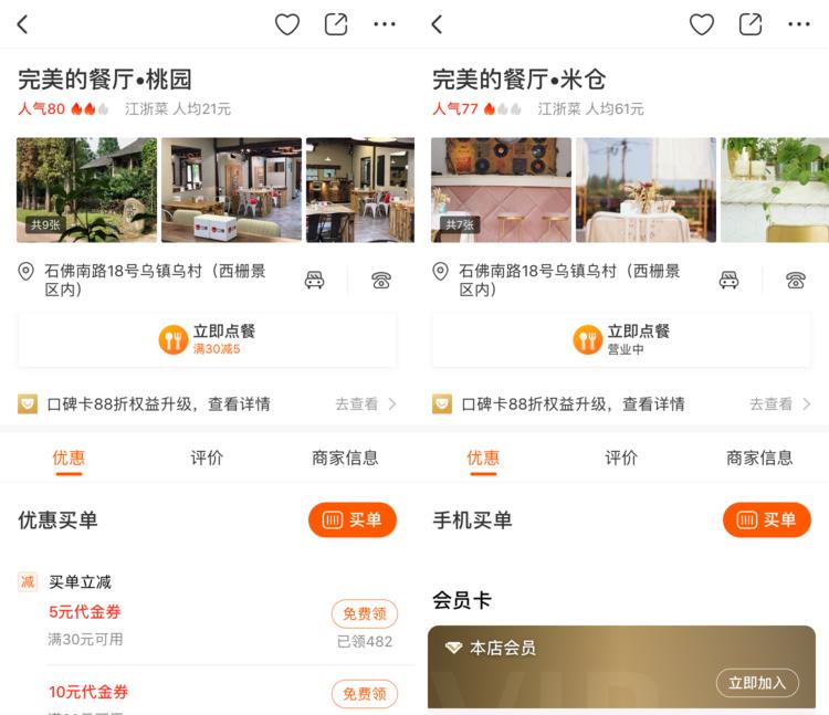 图/两家“出镜”餐厅的口碑内页
