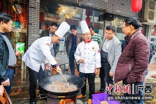 12月1日,桂林市餐饮烹饪协会和广西商业技师学院共同组织中国烹饪大师来到恭城瑤族自治县开展一县一菜品工程现场传艺活动。 中新网广西新闻12月2日电(唐梦宪)12月1日,桂林市餐饮