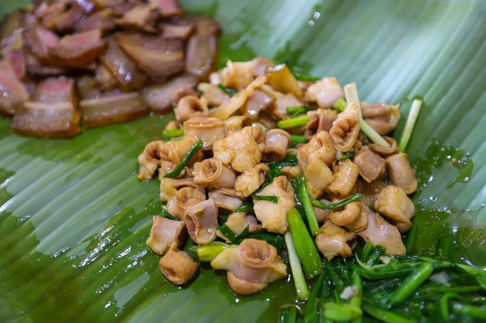 所有菜式中,炒芭蕉花,连我们 广东 人都是第一次吃, 百色 全境都是喀斯特峰林,溪流众多,而在峡谷下面有很多野生的芭蕉树,炒芭蕉花菜就是壮家人靠山吃山,就地取材发明的一道美食。