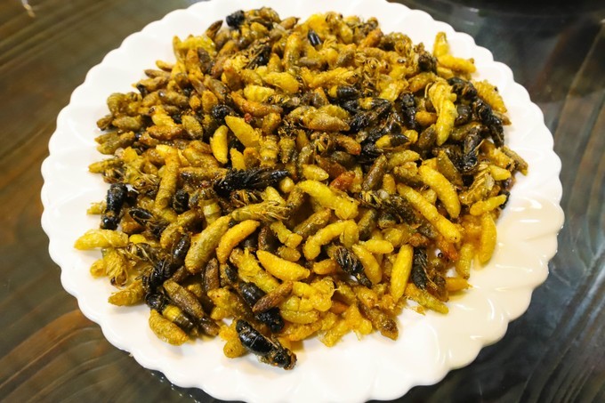 广西 山川秀美、物产富饶,食物多样性、多元化的食材与 广西 人民的智慧相碰撞时,下面这道是由虫蛹制作而成的食物,是 靖西 一道别具特色的民间风味美食。