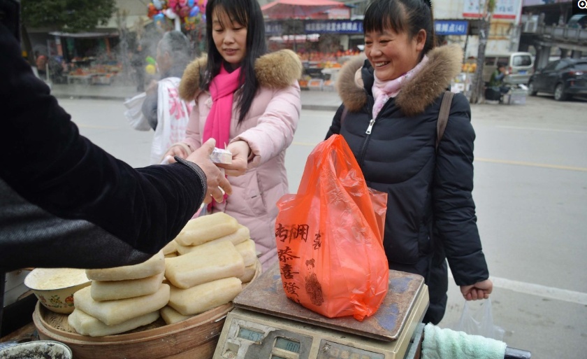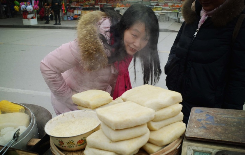 上图为早晨市民来胡师傅的早餐摊买早点,其中,最受欢迎的,就是这些传统的农村美食!胡师傅说,他做这一行已经有20年了,每天上午来城市的街头卖卖早点,下午回家种地,这些美食的原材料,都是自己种的!