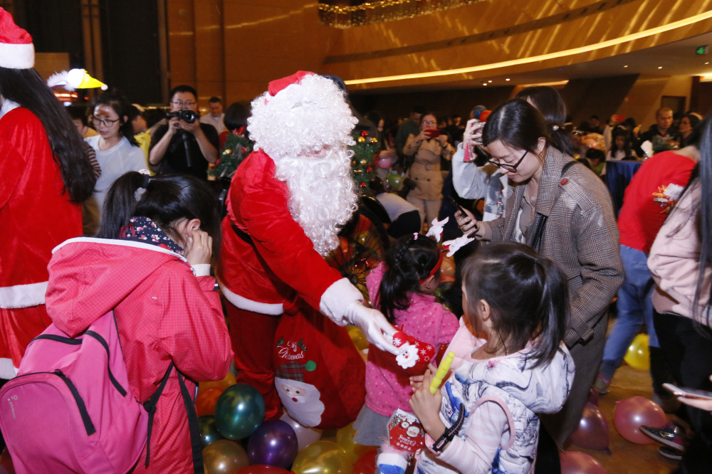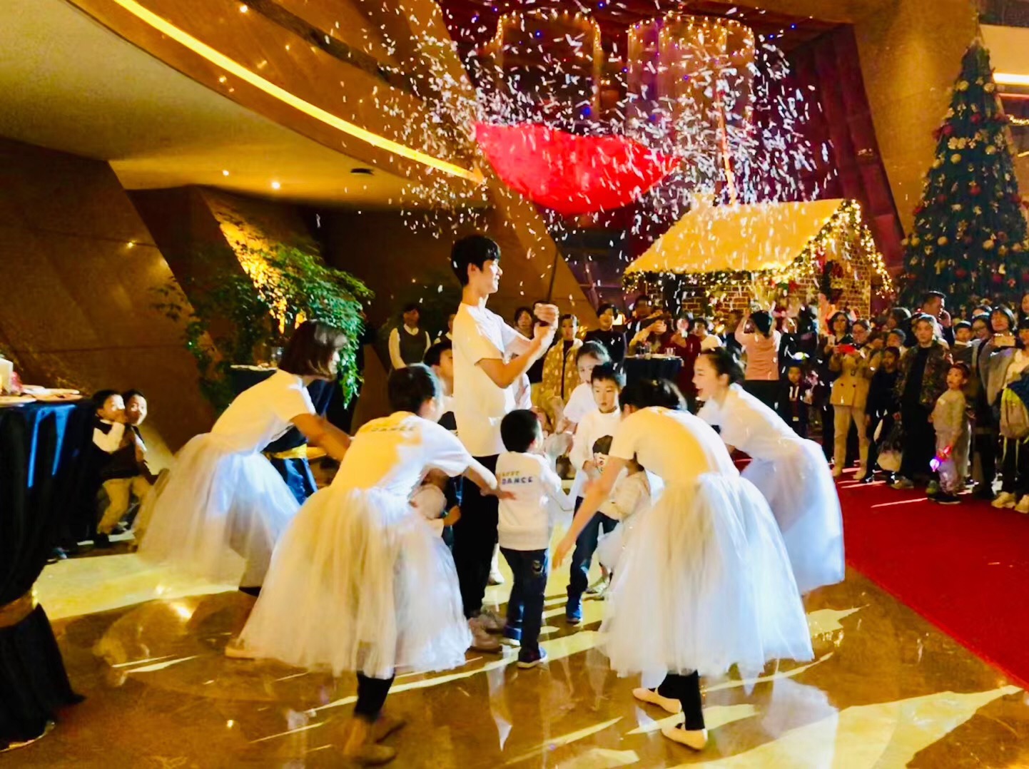 由杭州启明星儿童康复中心的小朋友与杭州舞乐艺术中心的老师们共同表演的舞蹈《雪孩子》开启活动,在杭州国际学校唱诗班演唱圣诞颂歌里,酒店总经理frankson lee上台发表圣诞致辞并与酒店管理层共同点亮圣诞树顶部的星光。