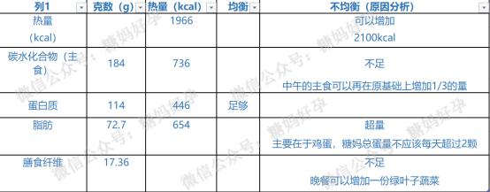 我们来分析分析这位宝妈一整天的热量及营养比例是否正确?