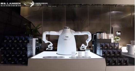 这次展会上亮相的orangestar机器人咖啡,就是产业共生的鲜活案例。作为聚焦年轻群体的新锐科技咖啡品牌,该咖啡机器人内置全球140多位大师的冲泡手法,主打“科技赋能咖啡体验”。朗生用定制板材还原金属质感的异形吧台,材料防火防水,搭配无钉无胶快装结构与磁吸层板,所有部件工厂预制、现场快速拼接。即使是吧台复杂的异形曲面与转角,也通过高精度的模块化设计和定制收口方案,实现了严丝合缝的过渡,确保了整体视觉的纯粹性与科技感。最终朗生让科技调性精准转化成为空间语言。