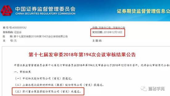 12月18日的上会结果,果然还是延续了3过2,但是唯一被否的就是卞爱进所在的苏州富士莱。