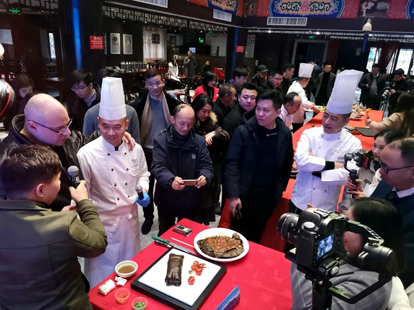 2019年是猪年,获得“2018南京最佳星级酒店自助餐厅推荐”荣誉的酒店总厨在活动现场大展魅力厨艺,以沃野臧猪为主要食材,每人烹制一道集味道与营养为一体的迎新春创意菜品。