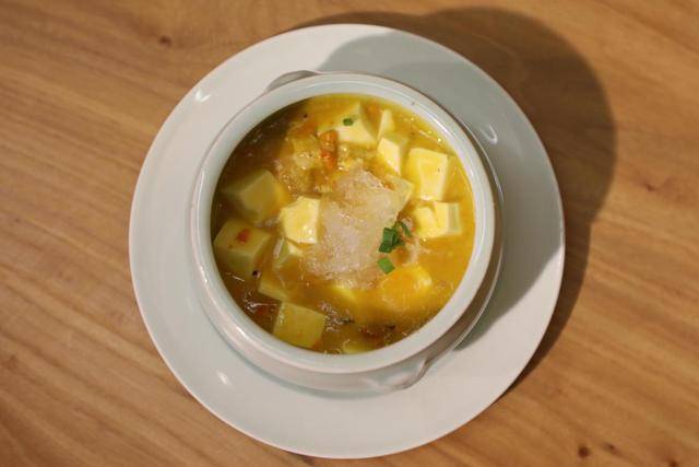 李大师发现,豆腐与燕窝有许多相同的特征,如素净、不刺激、不张扬,如两位涵养极高的尊者,那就不能用浓烈、刺激的方法去破坏食材的本色元素。他决定从食材本身下手,尊重食材本有的特性,以豆腐的鲜嫩豆香融合燕窝的纯净口感,用炖制保全食材固有的色相与滋味,并缓缓释放食材本真的清香,再配以相应的辅材做提香、增色。