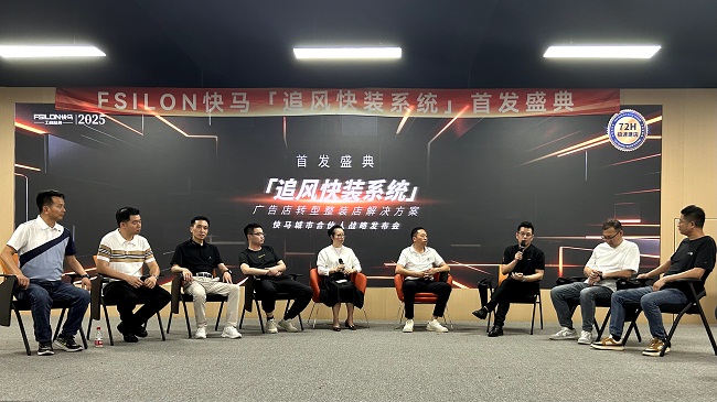 研讨会环节,与会嘉宾围绕“广告店如何借力装配式技术实现服务升级”展开热议。fsilon快马负责人张帆指出:“未来十年,商业整装的核心竞争力在于资源整合、平台赋能、生态协同。快马将开放供应链、技术与订单资源,与广告人等群体共建整装服务共同体”。