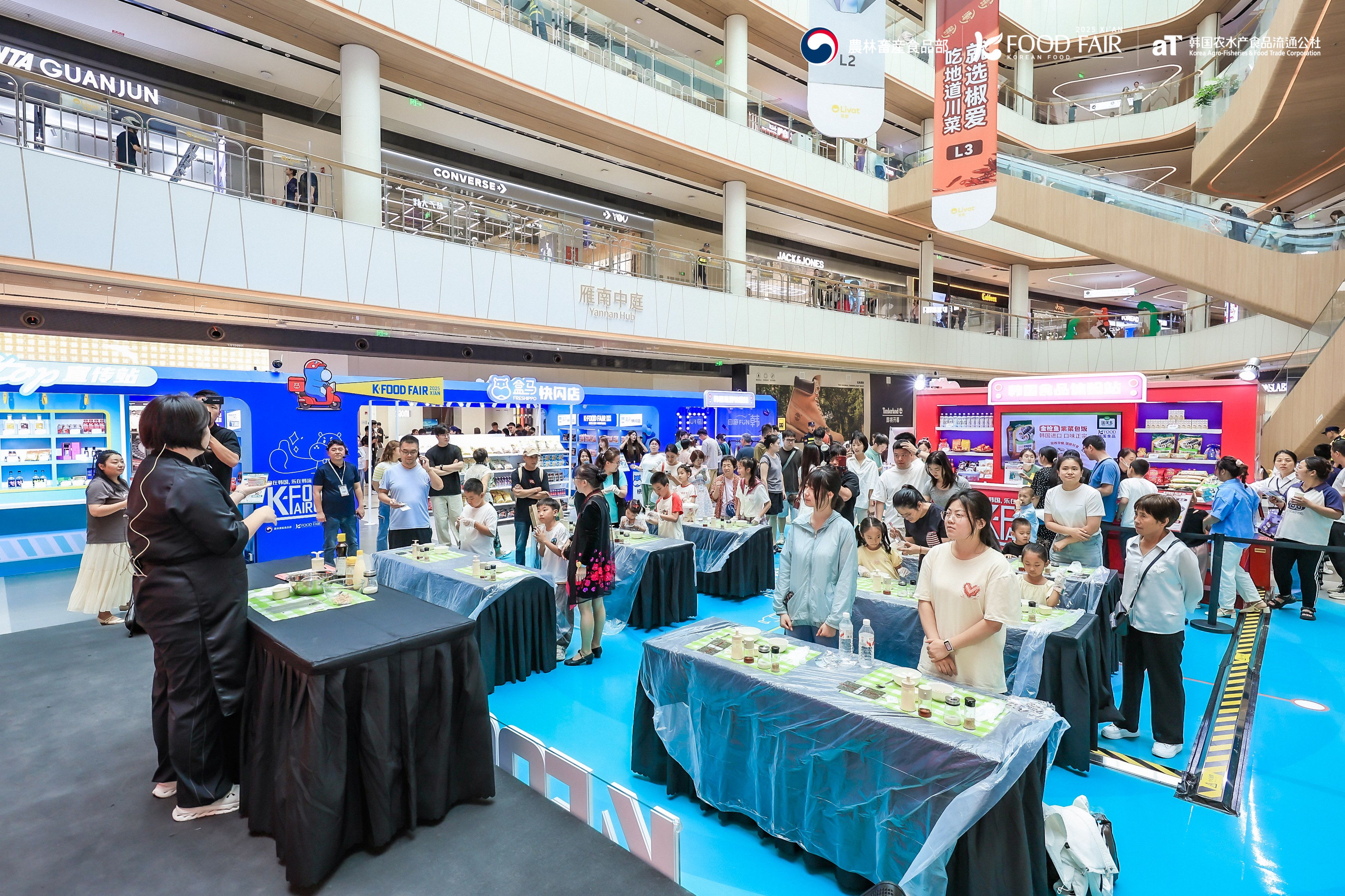 由韩国农水产食品流通公社(at)主办的“2025西安k-food fair”b2b洽谈会于5月28日至29日在西安万丽酒店成功举办。随后于5月30日至6月1日在西安荟聚购物中心举办的“k-food fair西安韩国食品站”更是吸引着络绎不绝的游客前来参观参与现场活动。